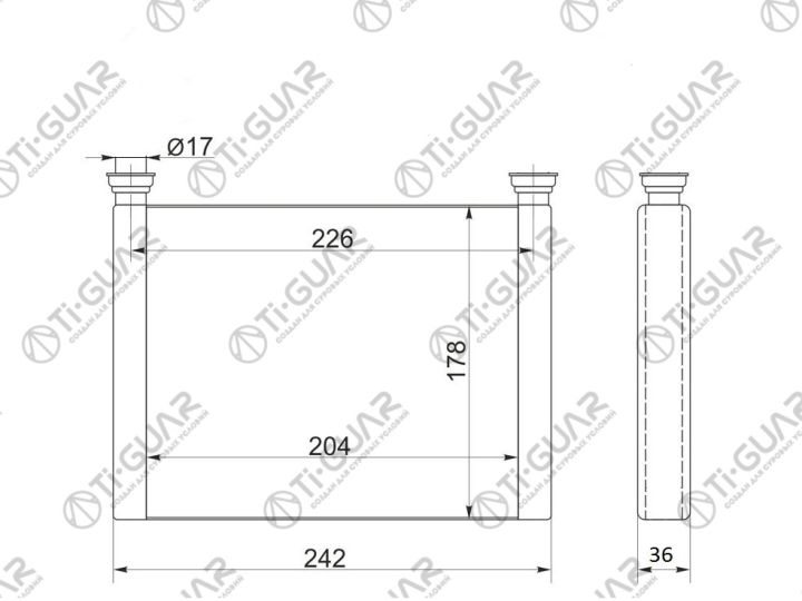 Радиатор отопителя /TI-GUAR для Honda Accord Torneo 1997-2002 CF#; толшина 36 мм; TG-RIH0008; STHD27395A0 79110S0A003 NU7SE34423