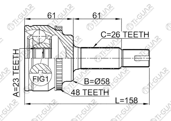 ШРУС наружный /TI-GUAR для Toyota Corolla 1997-2002 ZZE120L ZZE120R ZZ121L ZZ121R 4ZZFE 3ZZFEZZFE 3ZZFE; 23*58*26; TG-95120Z48; (TO-117A48 CO-7562A 0110ZZE120A48) 4347009A14 4346009601 4341002240