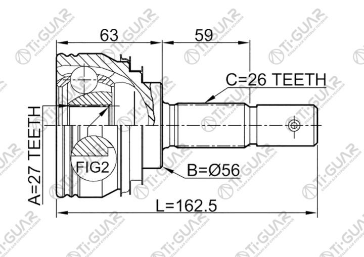ШРУС наружный /правый /левый /TI-GUAR для Toyota Camry 1989-1993 Vista Celica; 27*56*26; TG-9512; (TO-E012A TO-012A48 TGCVJ0021) 4341020670 JCT0048A CO7513